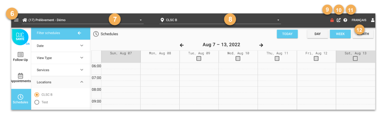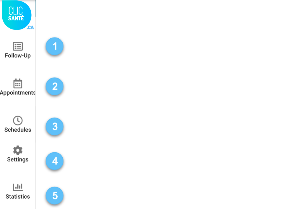 - Follow-up menu: The follow-up menu allows you to consult the list of all your appointments, make a search or manage the appointments.