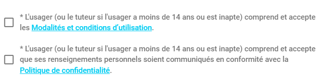 Si vous modifiez un des champs suivants, le consentement de l’usager doit être demandé à nouveau :